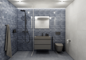 Тёплая и приближённая к природе душевая комната, основными оттенками которой...