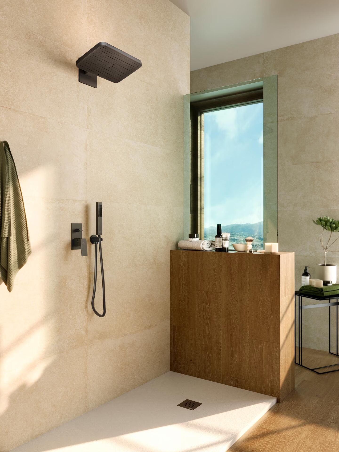 ВСТРАИВАЕМЫЙ ДУШЕВОЙ КОМПЛЕКТ. В КОМПЛЕКТ ВХОДИТ ВЕРХНИЙ ДУШ РАЗМЕРАМИ 360×240 ММ, РУЧНОЙ ДУШ С НАСТЕННЫМ ДЕРЖАТЕЛЕМ И ШЛАНГОМ 1500 ММ. ДОПОЛНИТЕЛЬНО ВКЛЮЧЁН НАСТЕННЫЙ ДУШЕВОЙ СМЕСИТЕЛЬ С ДВУМЯ ВЫХОДАМИ И ВСТРАИВАЕМОЙ ЧАСТЬЮ.
